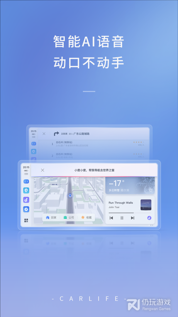 CarLife完美内置百度地图,最全最准的海量地点信息;实时路况智能播报,告别拥堵和罚单.