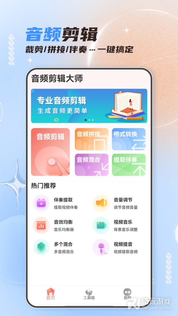 1、音频剪辑大师是一款非常好用的音频剪辑软件。软件提供音乐裁剪、音乐合并、音乐混合、音乐提取、格式转换、音频录制等功能,功能非常强大,喜欢的小伙伴快来下载体验