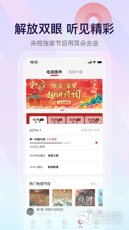 3、海量精彩节目全国1000+直播频道,中央电台、地方台、版权公司、互联网热门播客百万版权音频节目,想听啥都有