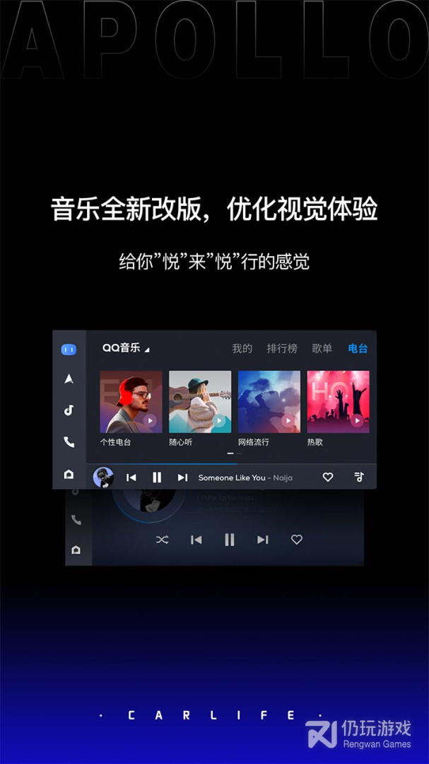 CarLife汇集当下热门音乐和电台精品App,无论本地音乐或在线音乐广播,可共享到车载系统直接播放,奏出环绕最强音。