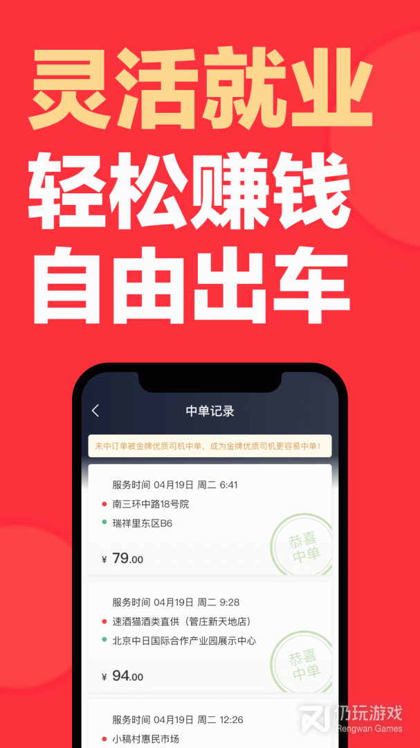 4、轻松赚钱,自由出车,快速提现,多劳多得,往返有单,收入飙升