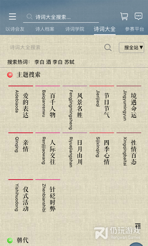 2.在上方搜索框输入想要寻找的诗词或者作者,小编以李白为例