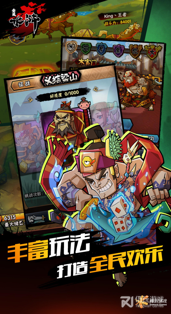 全民水浒手游是腾讯官方推出的一款策略卡牌类手机游戏,根据水浒传故事改编而成,画面萌态可爱,拥有全新个性鲜明的强力水浒武将,更有具有策略性的战术和阵容搭配。