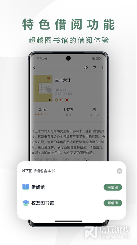 2.优质电子书共享借阅服务(唯一可在用户之间实现借阅的读书平台)