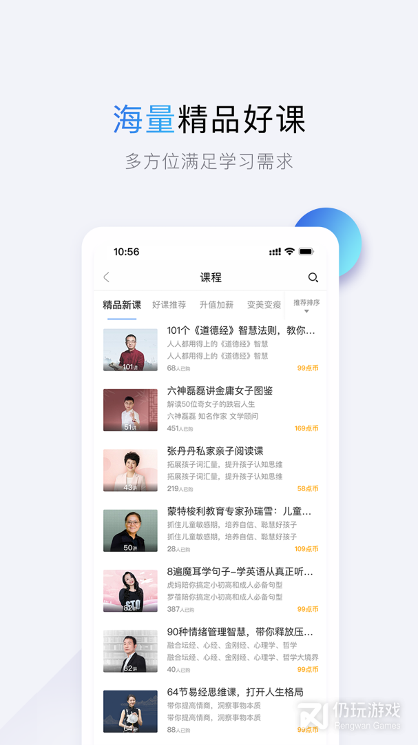课程涵盖:升职加薪、变美变瘦、人文社科、精致女性成长、家庭亲子教育、生活美学、高效成长等各领域,全方位提升个人品质。