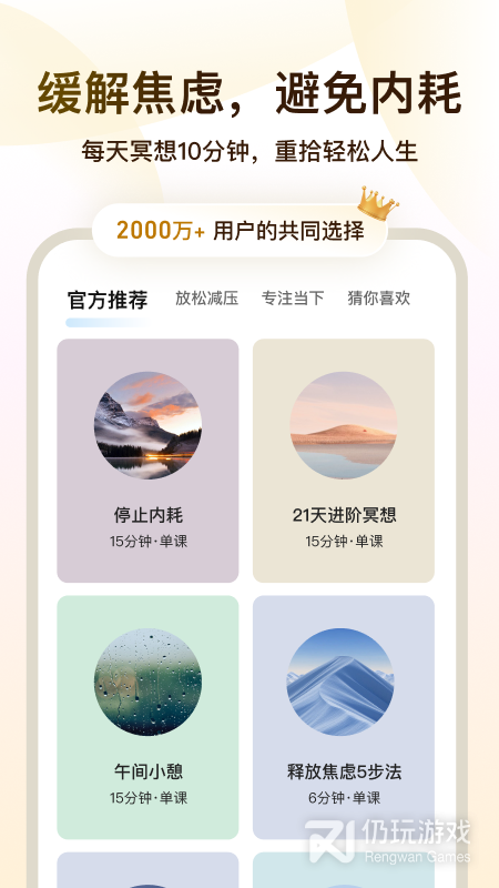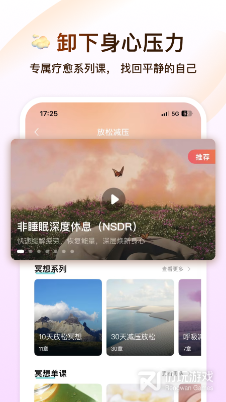 丰富全面的正念冥想课程体系,课程难度循序渐进。无论你是初学者还是练习多年的冥想者,都能轻松找到适合你的冥想课程。
