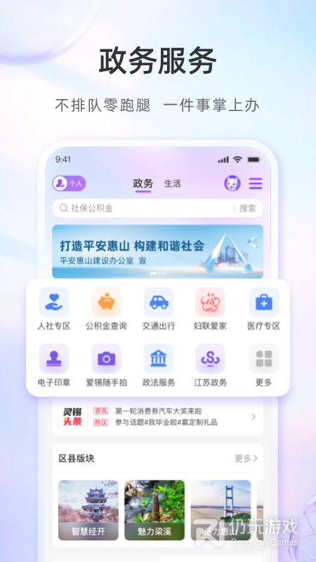 灵锡是可以让无锡人民的生活变得更加便捷的软件,覆盖了包括政务、新闻、交通、医疗等各个方面的服务。用户可以通过这里来了解最新的政府信息,进行各种线上的办理业务,关注最新的本地资讯。