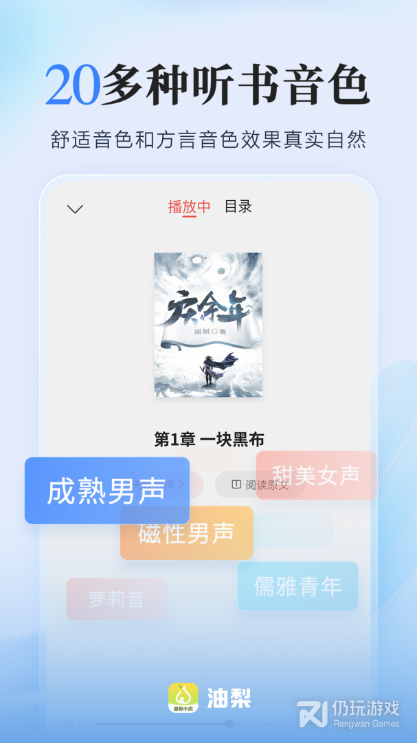 爱读掌阅是掌阅旗下的小说阅读软件,超多影视剧原著都可以在这里读到。软件根据你的阅读习惯和喜好来为你推荐最为合适的书籍,独具特色的朗读模式,可以原汁原味的还原出各地特色的方言,用你最为熟悉的声音来让你感受到最为奇妙的书中世界。
