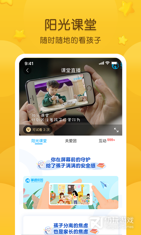 3、长通过“看宝宝”能实时了解幼儿园及宝宝在园情况,并通过流媒体技术达到随时随地实时观看宝宝动态。幼儿在掌通家园这一平台下,家长能够收获更多的宝宝安全保障和贴心服务