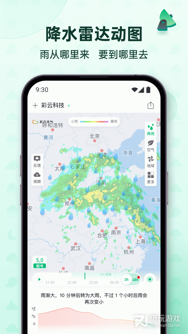 彩云天气是基于气象雷达图,利用人工智能算法进行分钟级降水预报的全球先驱者。