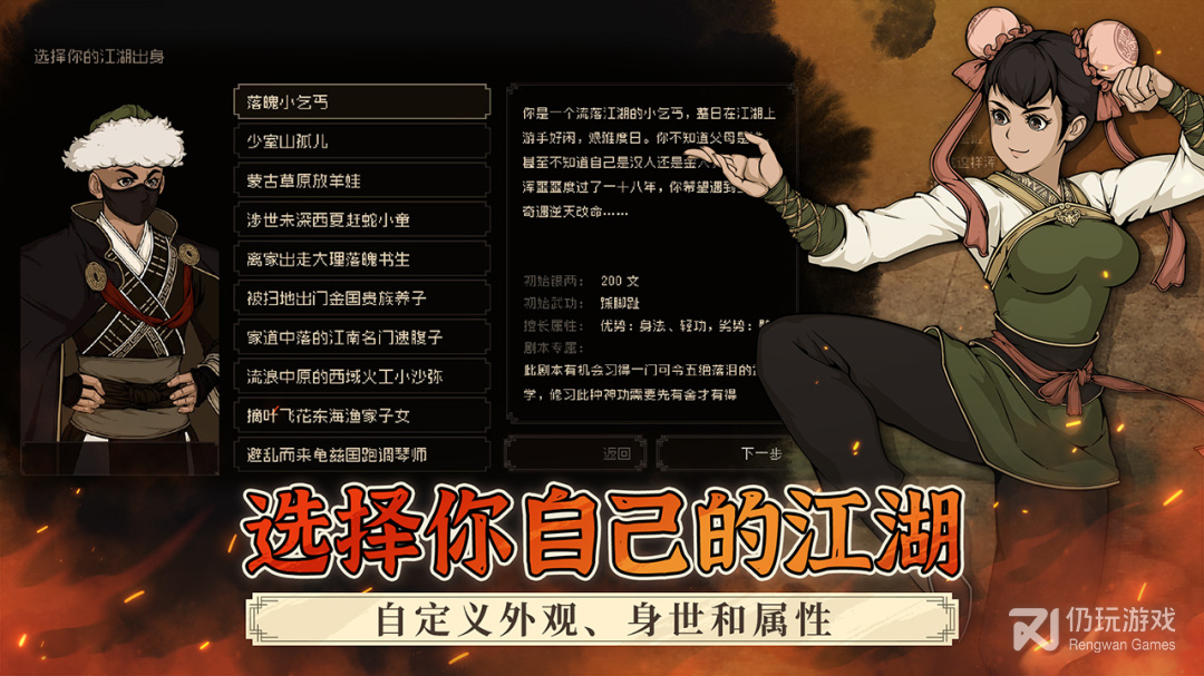 10+万字剧情故事,多分支主线结识不同的江湖队友,他们或是江湖浪子、书院才女,或是朝廷鹰犬、江洋大盗,可任意选择是与武林同道浪迹江湖,还是背靠大树登上权利巅峰,自由书写属于你的江湖故事。