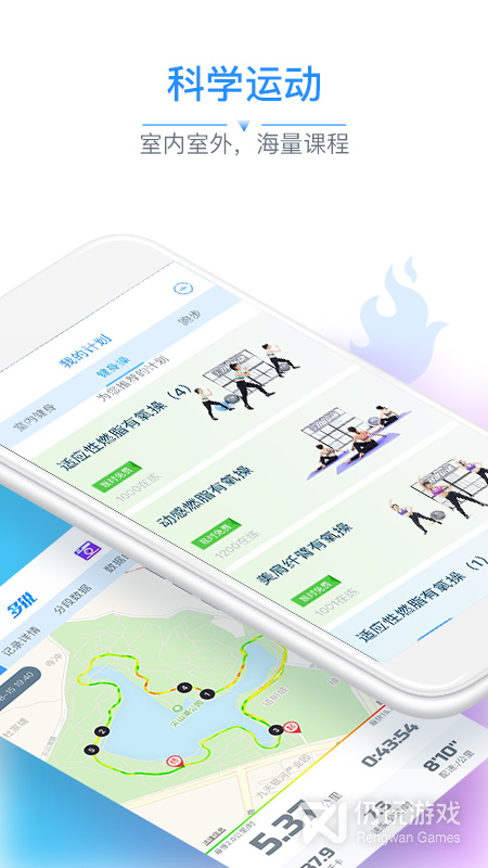 3D真人模拟跑步,呈现人机同步的趣味运动地图;专门优化的GPS定位算法绘制运动轨迹