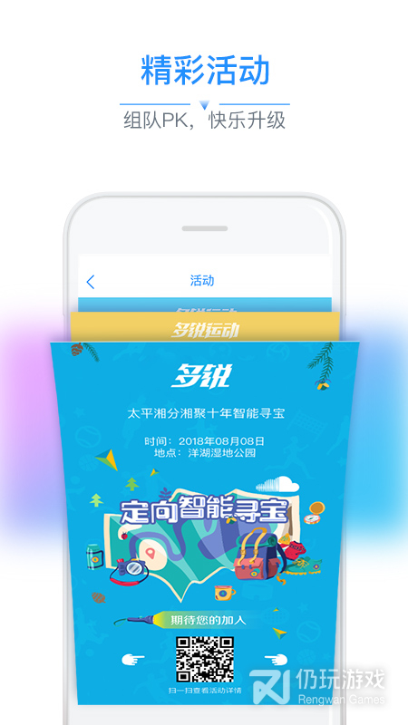 线上比赛,让运动竞技突破地域限制,榜单实时刷新,冠军争夺一触即发;线下寻宝,让同城活动更加智能好玩,成绩自动排名,多重玩法等你来战!