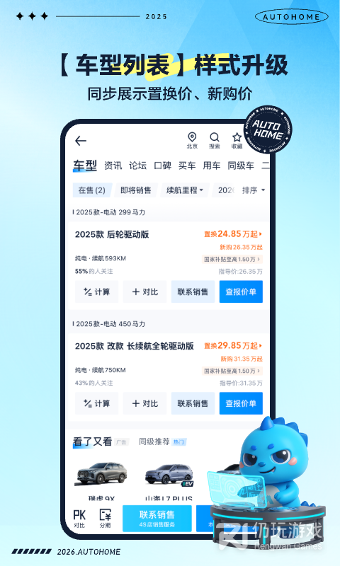 3.订阅你最喜欢车的信息:把您最关注、最喜欢的车定制到桌面上,随时可以查看这些车的最新信息。