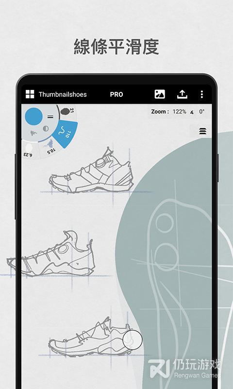 请查看工具转轮中的平滑度设定。点击该按钮可打开平滑设定滑条。可滑动或长按输入精确的平滑度。该值为100%时所画的一切线条都会变为直线。所以如果画圆等起点和终点一起的图形会消失不见。