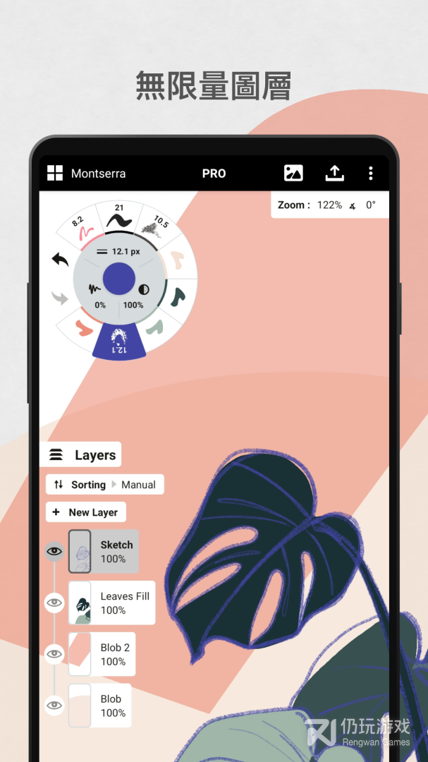 • 逼真响应压感、倾斜和速度的笔刷,并可选择实时平滑