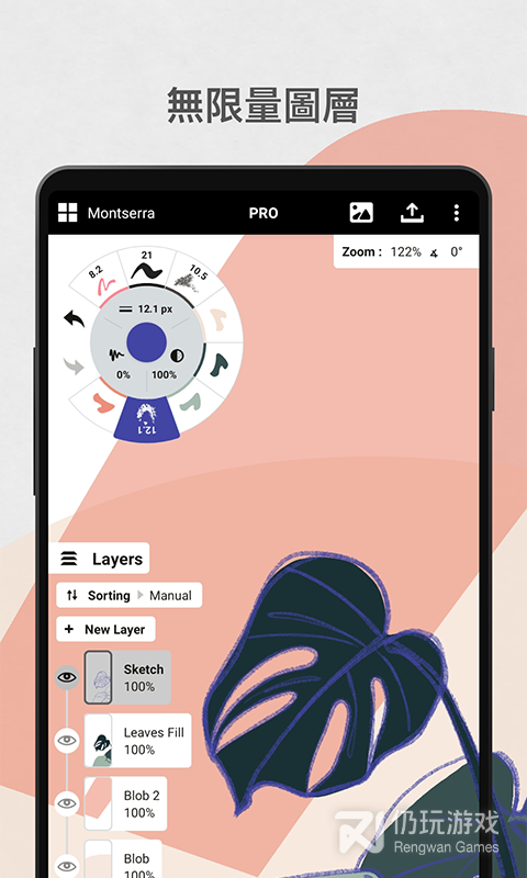 • 工具转轮和工具栏让您可个性化配置常用笔刷和预设