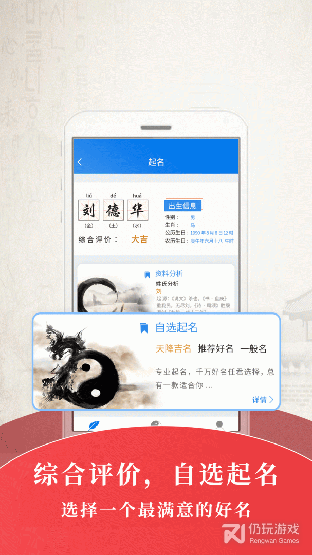 4、为你利用古文进行选名,从古诗、儒家经典、道经等典籍里为你挑选名字;