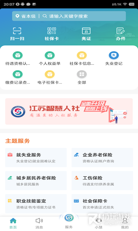江苏智慧人社是为在苏人员打造的人社在线服务平台,软件内为用户提供了来自江苏省各地的就业信息,为用户办理和社保相关的各种业务,为大家免去了奔波的时间,帮助大家更好进行就业。