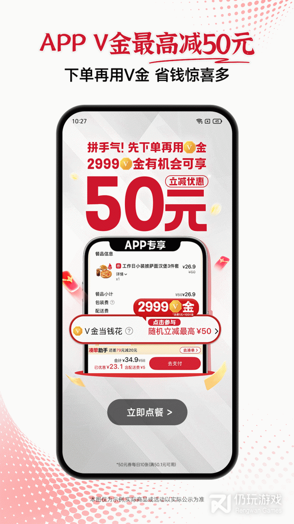 2、商城全新上线一站式购买美食优惠券。将优惠券商城、V金商城、礼品卡商城、好物商城中的产品全部呈现、更方便的选择购买方式让你轻松买的爽
