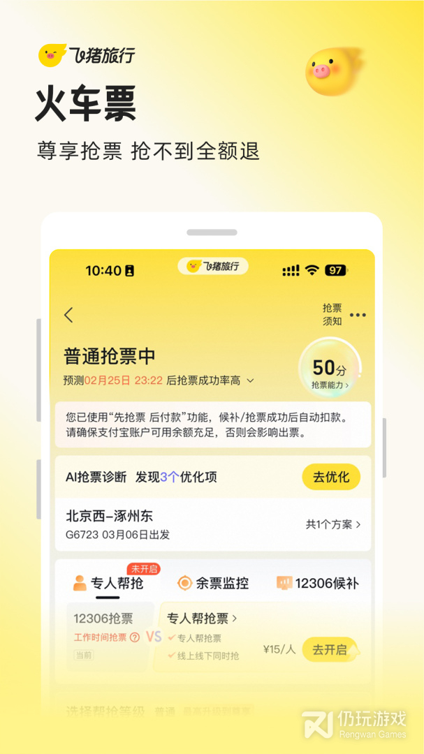 【火车票】AI有票神器助你抢票,搜索全网有票方案