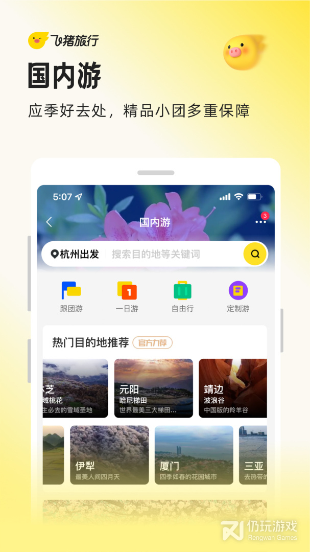 飞猪是一款阿里巴巴集团旗下旅行品牌,提供机票、酒店、火车票、汽车票、景点门票、用车、周末游、跟团游、自由行、自驾游、邮轮、旅游度假产品任您选!精选攻略、出行保险,旨在为您提供优惠、便捷、高性价比的出行服务。