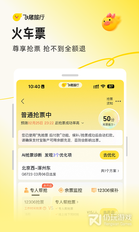 1、零手续费快速购票,覆盖全国随时出发,在线退票有保障