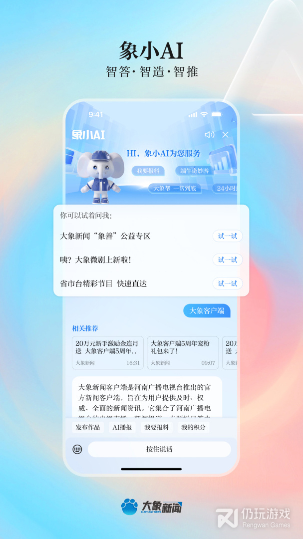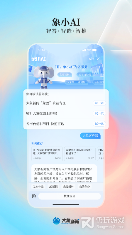 大象新闻客户端是由河南广播电视台主办的省级新闻综合客户端平台,内容以新闻为主,涵盖广播、电视、线上教育、图文、资讯、直播、评论等,立足本土,辐射中部,面向全国。