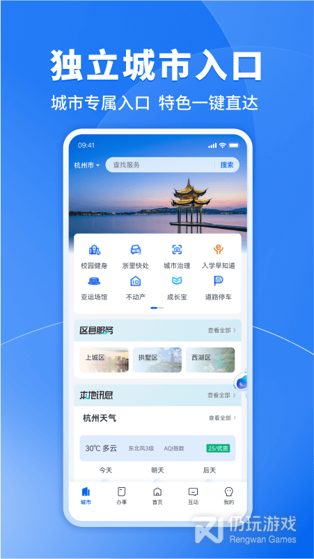 浙里办是一款可以让个人或是企业都能够在线进行申报服务的便利操作平台,为用户提供了创新方便的服务,还能支持个性化的资讯信息订阅,让你在手机上聊天一天中大大小小的新闻事件,第一时间掌握当下生活动态体验美好生活