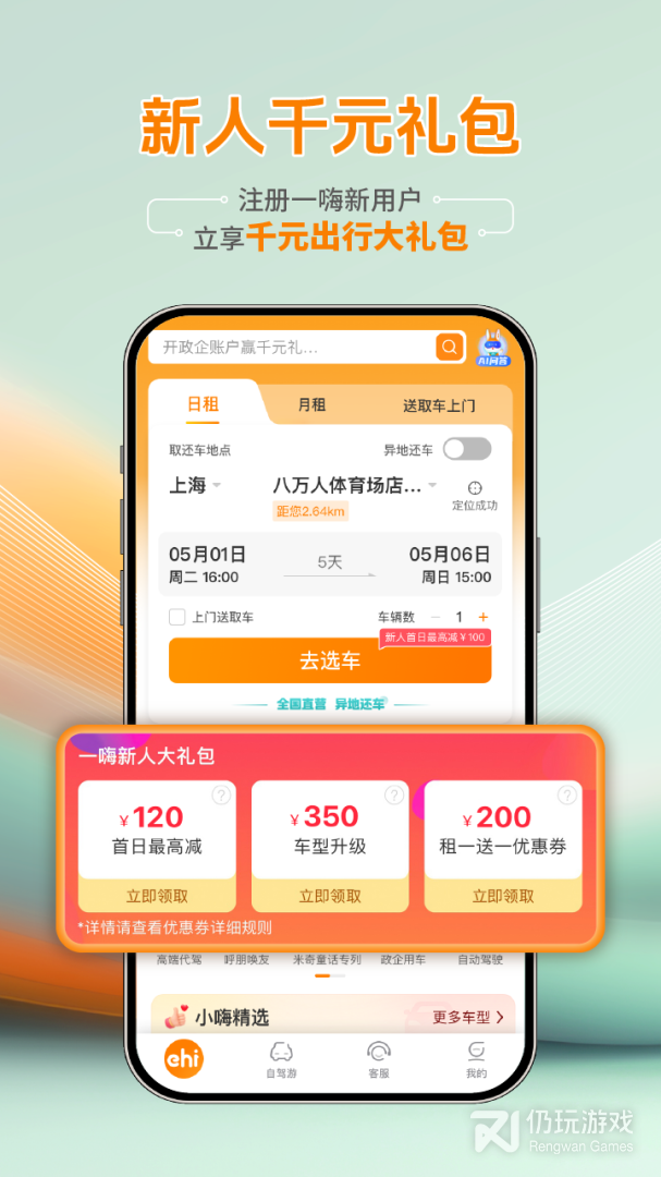 一嗨租车引领中国汽车租赁行业,以“改善国人出行方式,优化社会资源配置”为使命,积极为用户带来更便捷、更舒适、更人性化的租车体验。目前在国内已覆盖200+城市、300+机场/高铁站、2000+网点、200+车型、全系新车上架,更有高端豪车来袭,多城市提供免费上门取还车。活动期间新用户还能享受“0”元租车的优惠,最高立减100,3倍积分,还赠送50元优惠券。一嗨租车始终是都市白领、商务人士自驾出行的全新首选。