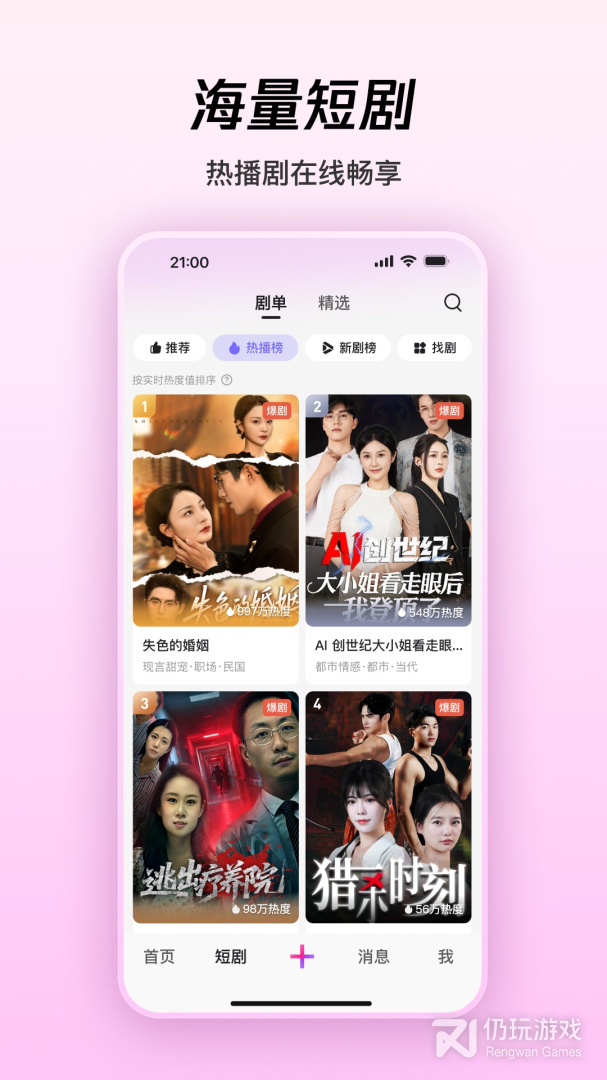 丰富精彩的短剧资源,家庭情感、现言甜宠、都市逆袭、古风言情等多种题材短剧每日上新,满足你多样的看剧偏好。在这里,刷到停不下来!