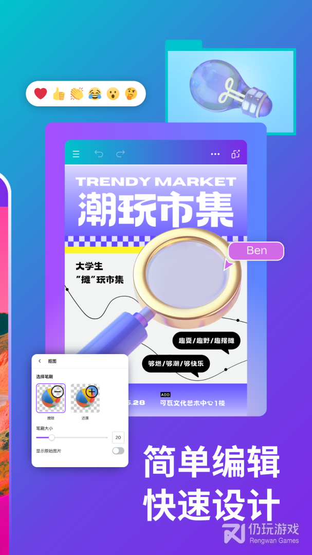 - 操作简单,无论手残党还是巧手党,海报制作,logo设计,各种在线设计都可以快速上手!