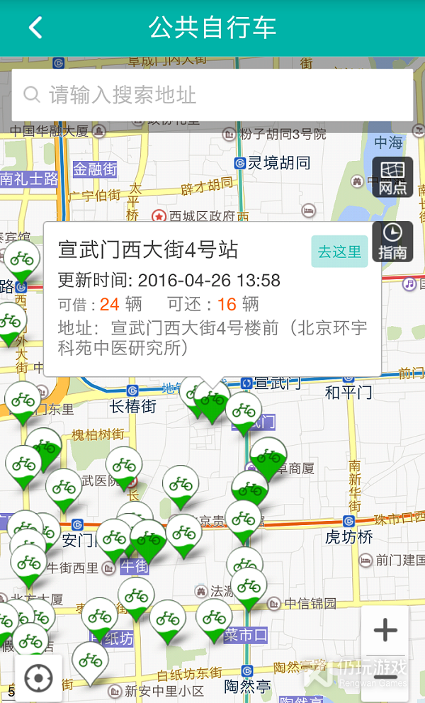 2.用户通过手机可以查找周边的公共自行车站点位置信息和实时可借车辆和空闲车位信息。该功能还支持根据“区域”、“距离”等条件进行过滤查询,帮助用户找到符合条件的公共自行车网点。