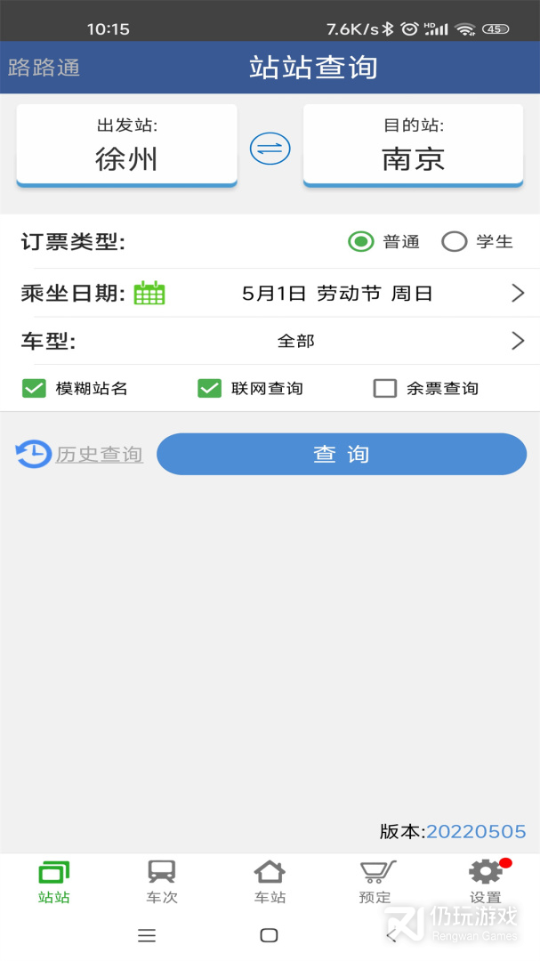 路路通是可以让你在手机上查询火车时刻的软件。这里包含了国内所有的列车信息,全天不间断的实时更新。用户可以在这里查询每一个车次的余票情况,及时的了解每一辆列车的发车时间。如果遇到了延误晚点等信息,软件会第一时间进行更新并提醒用户。