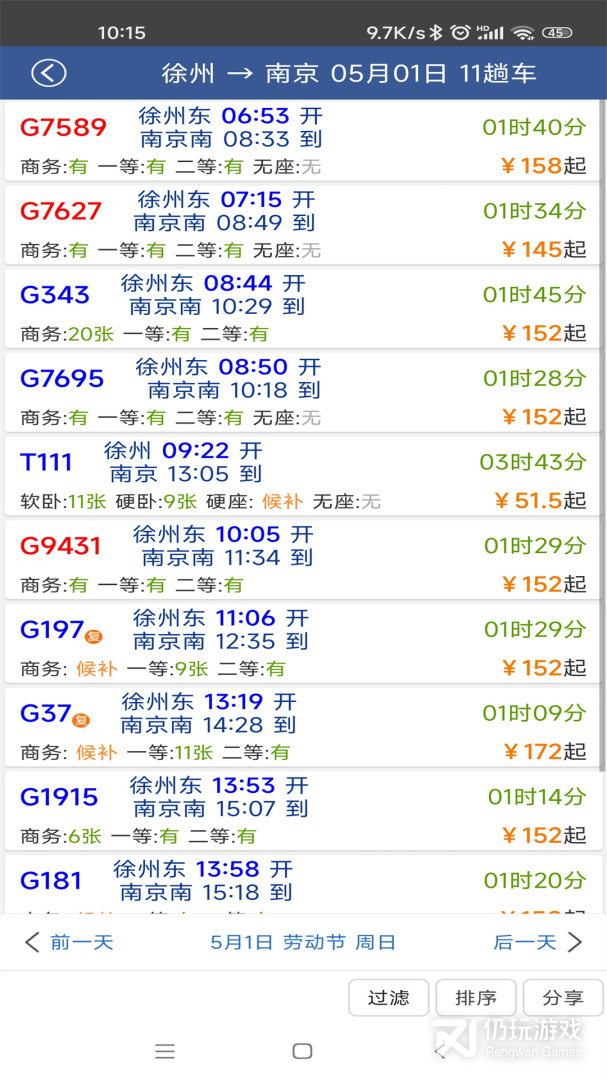 7.在线余票、票价查询功能(需要手机开通上网功能)