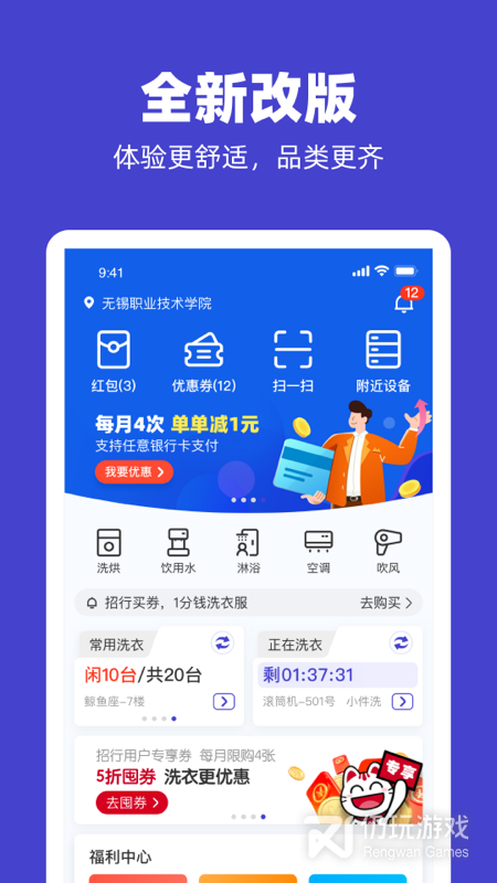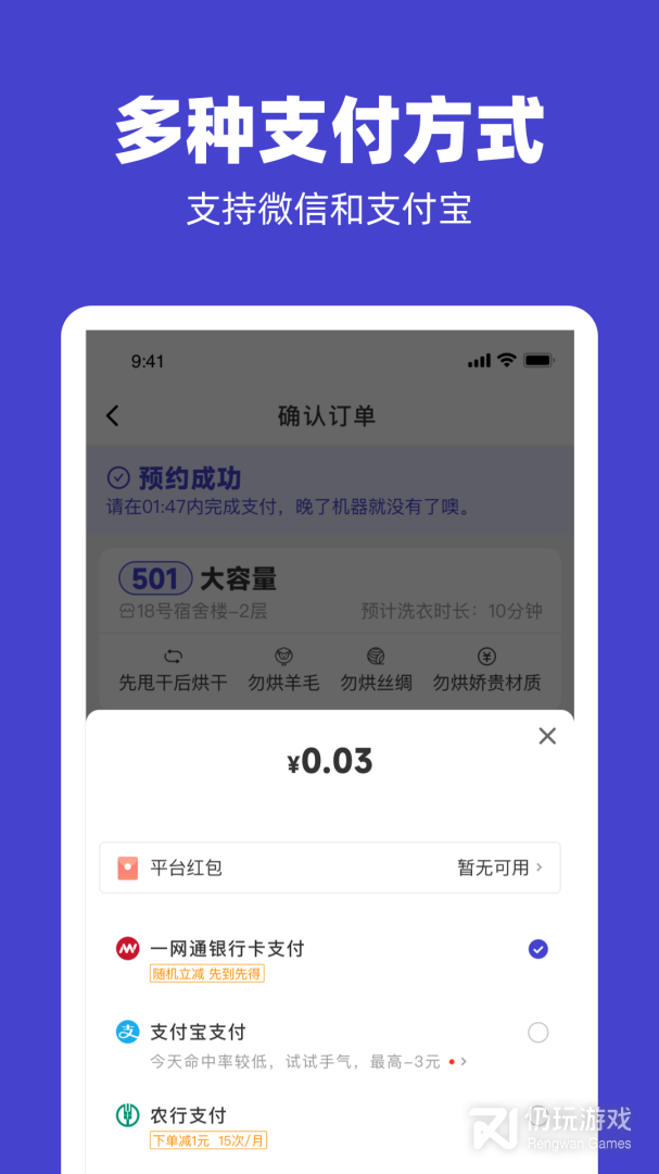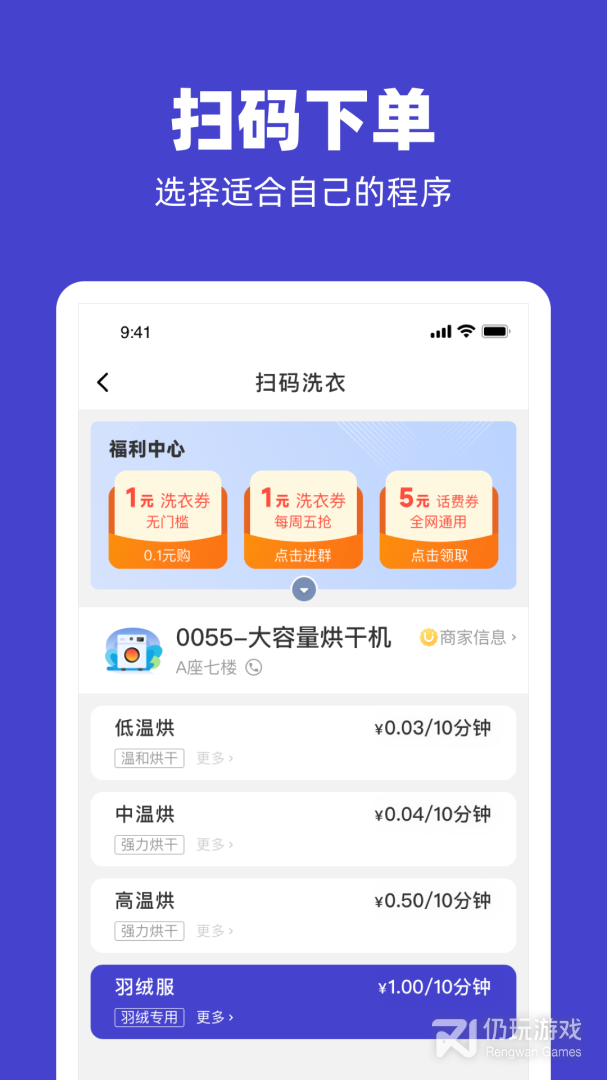 u净是全新推出的网上自助洗衣预约平台,是致力为大家提供优质洗衣服务的软件,覆盖了全国超过三十个城市。用户可以在这里一键查询附近的洗衣设备和空闲情况,进行在线洗衣预约,洗衣机、烘干机、干洗机、吹风机、净水机等等多种设备可以满足你的任何洗衣需求。