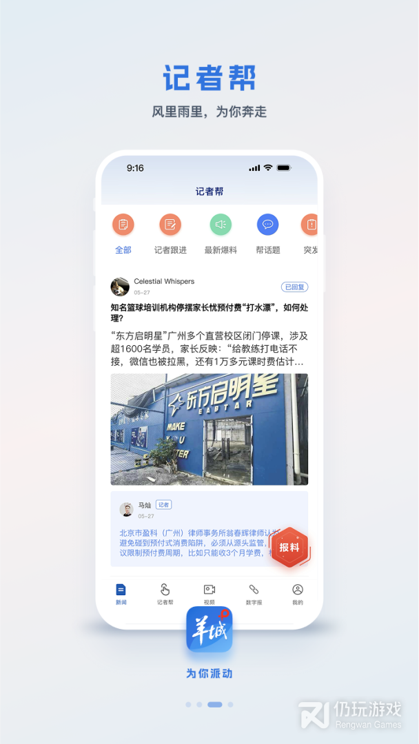 2、记者帮:“记者帮”是羊城派的针尖产品,主打消费维权、公共服务协调及政务服务沟通。家里水管爆了没人修?诈骗短信好烦人?地铁何时才能开到家门口?只要进入羊城派的“记者帮”栏目留言,即可得到羊城派编辑、记者的跟进和协调解决,让你的无力变得更有力。