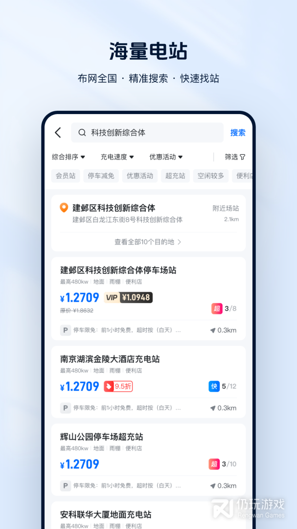 3、一键查找周边空余充电站、充电口,不用排队,无需等待。