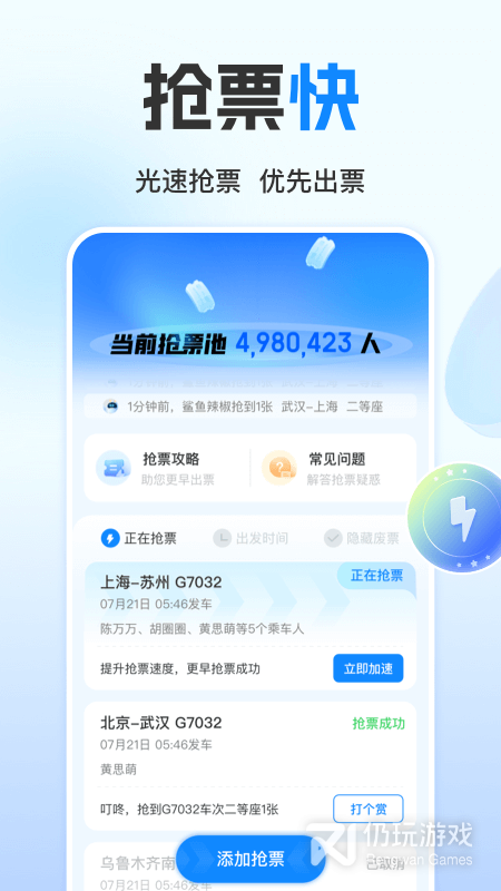 • 提速宝抢票:用提速宝加速,快人一步