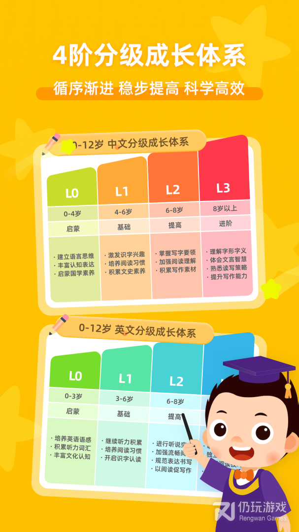 L2阶段:针对6-8岁分级阅读写作能力提升,实现高效阅读,提升表达和基础写作三大语文能力,学习进度不掉队。