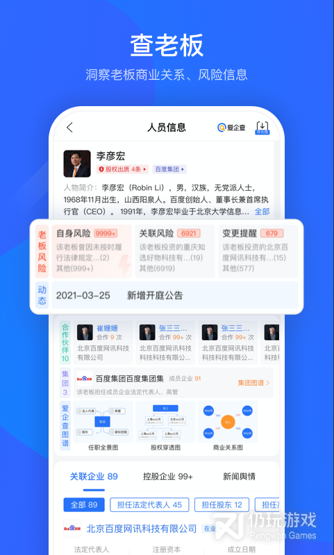 4、老板信息:个人图片、商业角色、所有企业、合作伙伴等