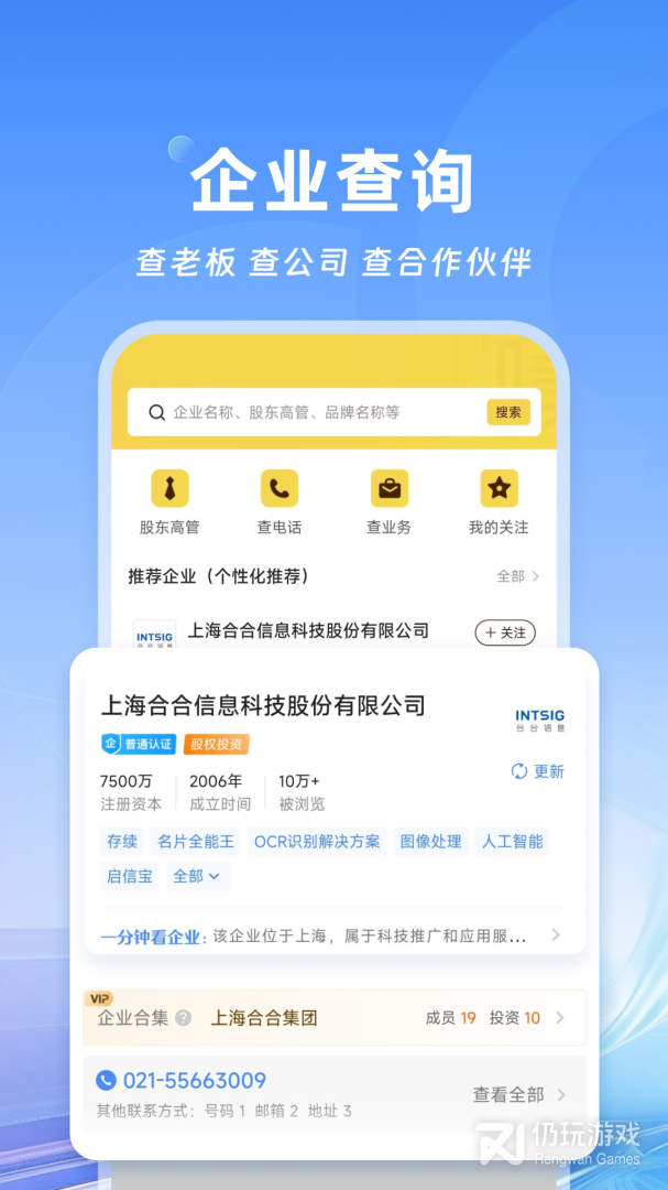 名片全能王可查询7500万家企业工商信用信息,帮您一键查询评估合作伙伴靠谱程度。
