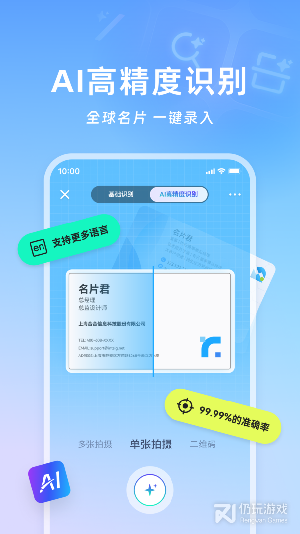 -手机拍名片,快速识别,客户联系信息瞬间录入