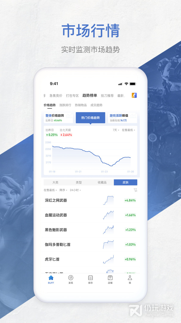 网易BUFF是专门为steam的饰品和道具交易而推出的软件,拥有着非常安全的交易环境,用户可以放心的在这里购买和售卖物品。全天候待命的客服服务,不管你遇到了什么问题都可以为你即时解答。