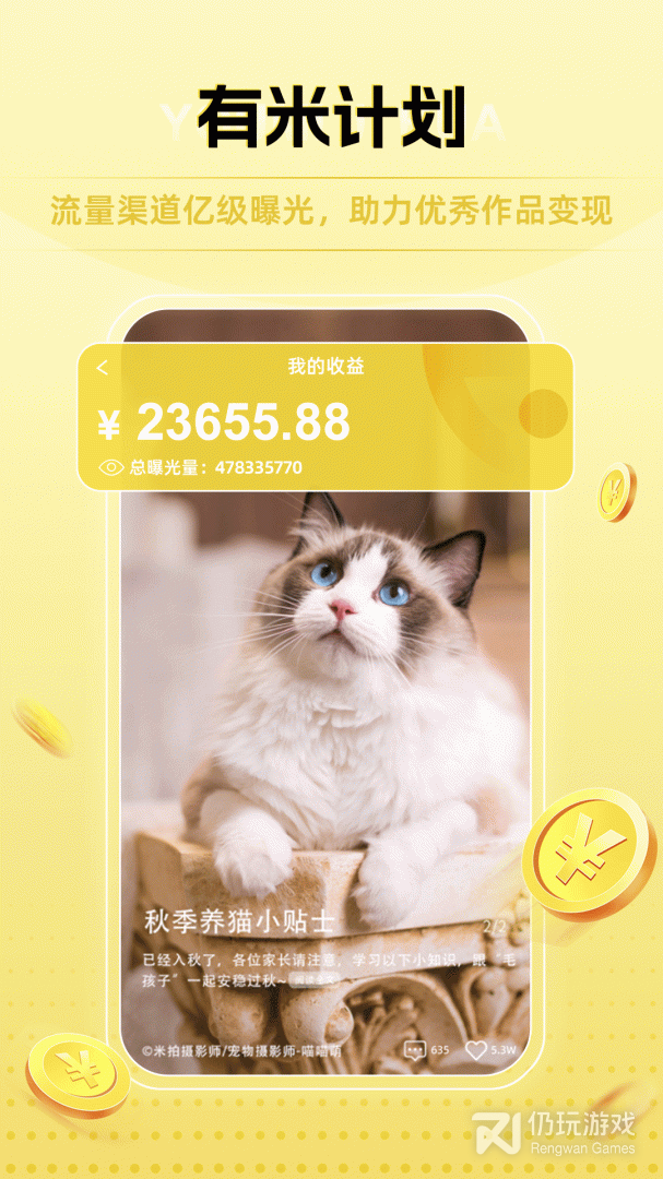 发布优秀照片或者Vlog,勾选有米计划,就有机会成为亿万手机的锁屏壁纸,百万级曝光迅速提升大众知名度,同时还可获得流量分成收益。