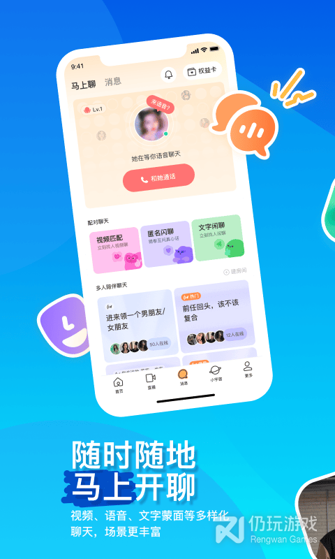 1、本全方位融入直播、短视频等视频元素,建立了沉浸式、场景化的社交方式