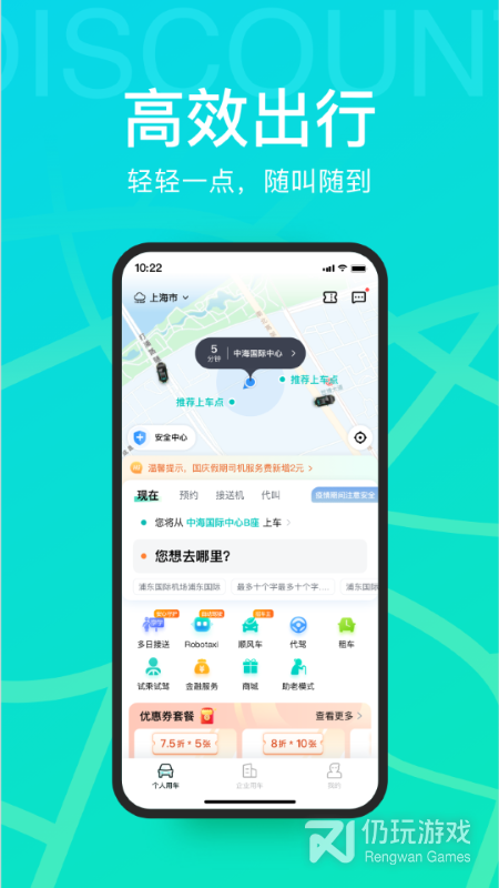 租车服务:面向个人用户提供无人自助、全天候的租车服务,网点遍布随借随还,智能自助日租/时租灵活选择,满足个性化需求和多元化出行场景需求。