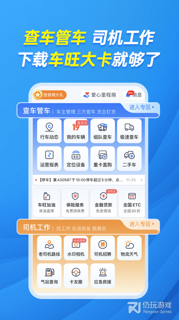 1、车旺大卡下载,这是一个交通运输软件哦!为货车司机提供的生活社交和商务办公的综合服务平台。拥有便捷的查询工具哦!感兴趣的朋友快来下载体验吧