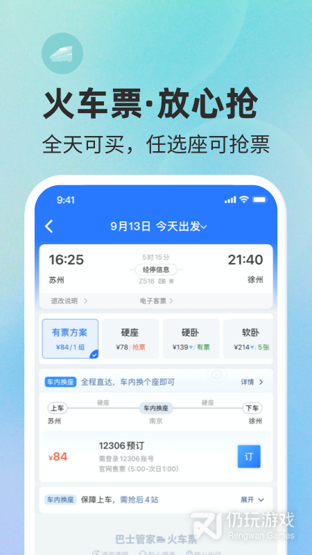 • 全新极速云抢票、上车补票,抢票快人一步;