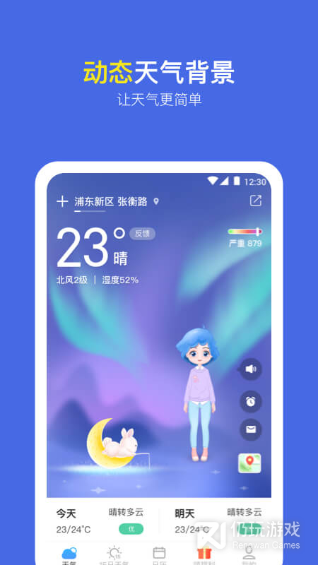 9、精美天气动画背景:看着动画,您就知道当天的天气状况。